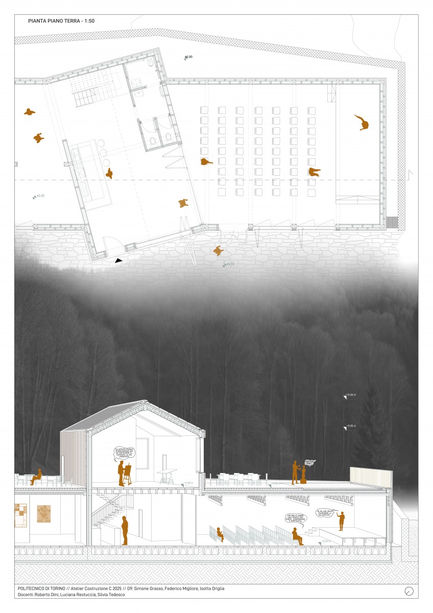 In the atelier, a design process was developed that, starting from the settlement scale oriented towards the development of a metaproject, moved through the building scale and finally reached the detail level. This process is characterized by a strong interconnection between territorial, architectural, construction, and technological dimensions. The project focused on the redevelopment of seven areas affected by settlement and environmental issues, where underused or abandoned building complexes are located. These sites are in Paluzza, a municipality in the Friuli region, in the province of Udine, situated in the Bût Valley in Carnia.