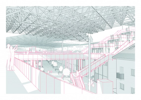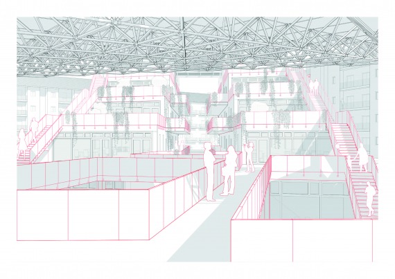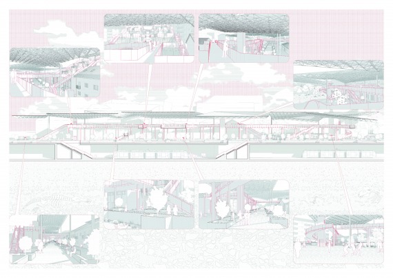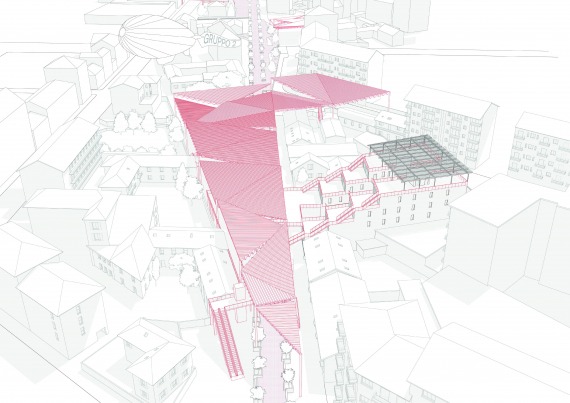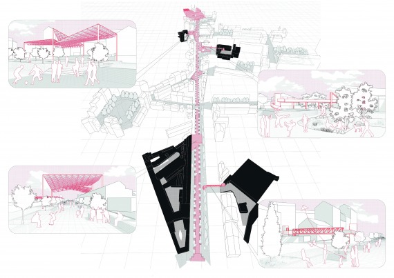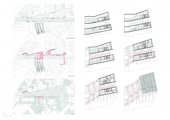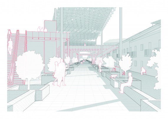 Il progetto interviene sulla Spina Reale a Torino, trasformando un’infrastruttura lineare in un sistema urbano attivo. Attraverso la progettazione di passerelle sopraelevate e dispositivi puntuali di connessione, si attivano relazioni trasversali tra cortili, spazi pubblici e tessuti frammentati. In corrispondenza della futura fermata 8 della Linea 12, l’intervento si intensifica: una copertura architettonica segna il nodo urbano, generando un luogo riconoscibile. La passerella si dilata in un edificio gradonato, che diventa spazio abitabile e scenografico. Il progetto agisce come infrastruttura narrativa, generando attraversamenti, eventi e nuove possibilità di incontro.