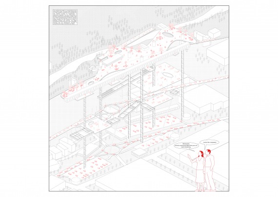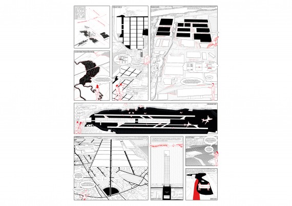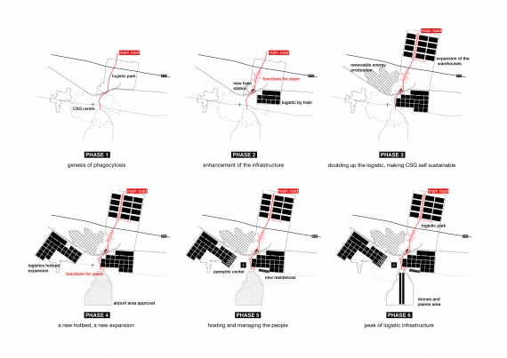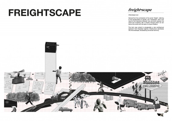 Freightscape immagina un futuro in cui la logistica fagocita la città, trasformando Castel San Giovanni in un nuovo paradigma urbano. Attraverso fasi progressive, la logistica si espande includendo infrastrutture, residenze, energia e servizi, fino a dar vita a una città interamente modellata sulle sue esigenze. Il progetto affronta la tensione tra necessità economiche e integrità territoriale, proponendo un modello che concentra la pressione logistica per salvaguardare altri contesti. Senza promuovere consumo di suolo, definisce aree ecologiche interdette all’uomo. Al centro, un’infrastruttura a tre livelli — camion, auto, pedoni — organizza funzioni e flussi, dando forma a un ecosistema urbano complesso.