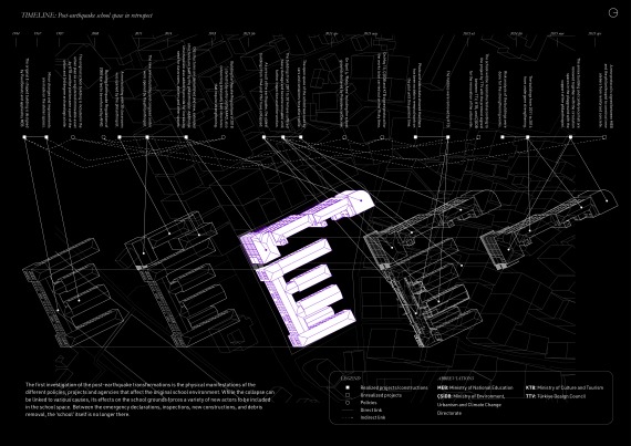 Antakya, una delle città più colpite dal terremoto del 6 Febbraio 2023, e i cambiamenti che ha subito dopo il sisma costituiscono la base di questa ricerca. L'obiettivo della ricerca è esaminare i processi politici post-terremoto da una prospettiva architettonica attraverso l'indagine sulla rete di edifici scolastici nel centro di Antakya. Attraverso questo studio, viene presentata una narrazione alternativa in cui elementi architettonici e politici coesistono. Inoltre, una scuola specifica all'interno della rete è sottoposta a un dettagliato studio retrospettivo in cui vengono discusse le dinamiche architettoniche e politiche.